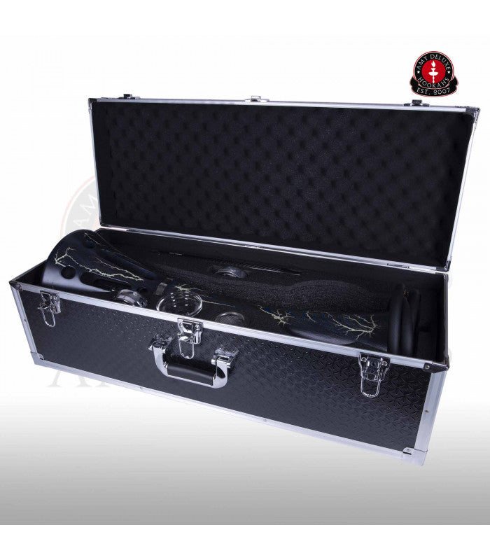 The interior of the Prestige is made entirely of stainless steel. This makes it particularly durable and it can be easily smoked with different types of tobacco. The body of the hookah is made of high quality Wood adorned with ornaments that glow in the dark.